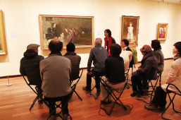 閉館日の静まり返ったギャラリーで進行役の匠な質問に促されるように、椅子に座った認知症高齢者の方々がときに笑顔を見せて、活き活きと感受性豊かに絵を見て感じたこと、想像したことを自由にコメントしていました。